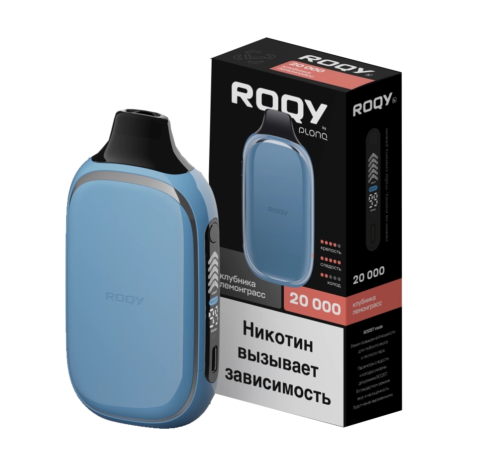 Крепкий характер, бунтарский дух все это новинка от компании Plonq - PLONQ ROQY L 20000. Hовый бренд больших затяжек с гибридным никотином от компании Plonq, который гарантирует быстрое насыщение и ощутимую крепость. Гибридный никотин, это сочетание солевого и щелочного никотина в равных пропорциях (50/50) специально для тех, кто требует максимум от каждого вдоха. ROQY объединяет лучшие качества обоих типов никотина — даёт ощутимую крепость и быстрое насыщение. ROQY оснащён современным LED-дисплеем, который отображает уровень заряда батареи и жидкости в режиме реального времени. Также на экране показывается статус зарядки и активация режима Boost. Boost режим усиливает опыт использования на максимум, он повышает мощность испарения, обеспечивая максимальную интенсивность вкуса и объём пара с каждой затяжкой. ROQY для сильных и решительных — тех, кто живёт по своим правилам, не боится выделяться и всегда двигается вперёд. Вся линейка уже в наличии, выбери свой вкус.